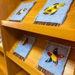 Parodos „Jūros gyvūnija“ kūrybiniai darbeliai buvo atlikti audimo staklėmis bei veltinio technika. Ant žydrai išaustų audinių nugulė jūros platybių gyventojai.