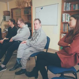Kovo 27 d. Panevėžio gatvės „Lakštučių“ padalinys išdidžiai žygiavo į biblioterapijos užsiėmimą Klaipėdos audiosensorinėje bibliotekoje. Kadangi kovo mėnuo yra skirtas atkreipti dėmesį į sopulius visuomenėje dėl patiriamų patyčių , užsiėmimas taip pat buvo šia tema. Biblioterapijos vedėja Daiva Žemelienė labai išraiškingai skaitė mums „Akmenuko istoriją“; tikime, kad šis pasakojimas pasėjo išminties ir supratingumo grūdą kiekvieno dalyvio širdyje – nesmerkti, neskubėti išspjauti pikto žodžio, neskaudinti kito. Po istorijos skaitymo, iš rankų į rankas leidome mėlynąjį „džiaugsmo ir gražių linkėjimų“ kamuolį, išsakėme vieni kitiems palaikančius žodžius, komplimentus bei padėkas. Tai labai stiprinanti ir nuotaiką gerinanti praktika! Dėkojame Daivai už svetingumą, švelnų ir magišką balso tembrą bei bendradarbiavimą. Grįšime!!!