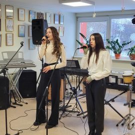 Žiemiškai šaltą gruodžio 15 d. Panevėžio g. 2 padalinyje po trumpos pertraukos sulaukėme svečių iš Klaipėdos Aitvaro gimnazijos. Ši gimnazija nuo šių metų yra mūsų bendradarbiavimo partnerė, nors mūsų draugystė tęsiasi jau daugelį metų. Šį kartą mokiniai kartu su mokytojomis mums paruošė Kalėdinę koncertinę programą, kurios metu skambėjo įvairių kalbų nuostabios dainos. Mokinių pasirodymas jau yra mūsų visų laukiama šventė, tapusi tradicija. Tokie bendri susitikimai suteikia daugybę gerų emocijų, malonių akimirkų, gausybę įspūdžių prieš didžiąsias metų šventes. Visus mūsų bendruomenės narius pradžiugino eilėraščiai apie Šv. Kalėdas bei pačių mokinių pagaminti kalėdiniai žaisliukai, skanėstai – mūsų jaunuoliams kalėdinė dovanėlė. Dėkojome Aitvaro gimnazijos bendruomenei už konstruktyvų bendradarbiavimą, ilgametę draugystę bei šiltus santykius.