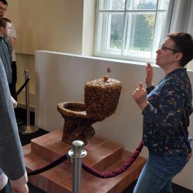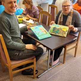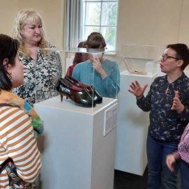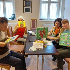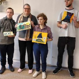 Dienos centre vis ieškoma naujų technikų ir metodų – siekiama užimtumo veiklų įvairovės didinant žmonių su negalia socialinę integraciją į miesto bendruomenę bei praplečiant jiems teikiamų sociokultūrinių paslaugų spektrą. Norėdami susipažinti su naujomis technikomis balandžio 24 d. Panevėžio g. 2 padalinio paslaugų gavėjai, lydimi darbuotojų, vyko į Palangos gintaro muziejų. Šį kartą jaunuoliams buvo suteikta galimybė atskleisti savo gabumus edukacinio užsiėmimo „Paveikslas iš audinių“ metu. Kūrybinėje dirbtuvėje iš audinio skiaučių socialinių paslaugų gavėjai kūrė paveikslą, kuriame iškilo peizažas, abstrakcija, ornamentas. Panaudojus gintarinę skaldą, atgijo ne tik spalvų dėmės, bet ir audinių faktūros, netikėti vaizdai bei reljefai. Jaunuoliai liko labai patenkinti savo kūrybos rezultatu. Kūrybinės dirbtuvės – tai būdas bendrauti, atsipalaiduoti, pozityviai ir turiningai praleisti laiką. Vėliau muziejaus edukatorė supažindino mūsų bendruomenės narius su vykstančios gintaro muziejuje parodos „Mūsų gyslomis teka gintaras“ eksponatais.