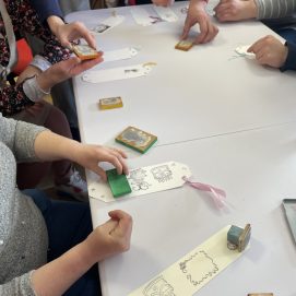 Beje, paslaugų gavėjai sudalyvavo ir nuostabioje bibliotekos edukacijoje, kurios metu gamino knygų skirtukus sau bei draugams. Jaunuoliai su dideliu noru įsitraukė į skirtukų gamybos procesą.