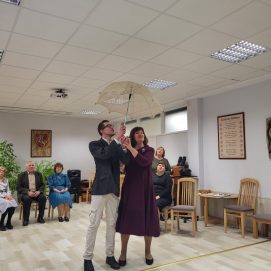 Sausio 31 d. rytą (Panevėžio g. pad.) jaunuoliai, lydimi darbuotojų, išsiruošė į Klaipėdos regos ugdymo centrą pasisvečiuoti ir pažiūrėti naujai sukurto spektaklio ,,Gyvenime aš gyvenu“.  Dauguma suvaidintų situacijų privertė mus susimąstyti, tačiau vaidinime nestigo humoro, muzikos ir juoko. Atsidėkodami už nuostabų pasirodymą įteikėme įstaigoje užaugintą gėlytę, kuri simbolizuoja mūsų  draugystę ir padėką bei mūsų darbščių virtuvės bitučių iškeptą pyragą. Dėkojame Klaipėdos regos ugdymo centrui už bendrystę ir lauksime kitų susitikimų.