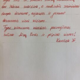 Prieš pat Šv. Kalėdas, gruodžio 23 d., Panevėžio g. padalinį aplankė Kalėdų Senelis su kalėdiniu paštu. Mūsų paslaugų gavėjus labai pradžiugino gausybė šventinių sveikinimų laiškų. Ypač dėkojame mūsų draugams iš Klaipėdos miesto Aitvaro gimnazijos už nuoširdžius sveikinimus ir gražius palinkėjimus – jie sukūrė tikrą bendrystės jausmą ir pripildė dieną šventinės nuotaikos.