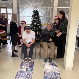 Gruodžio 19 dieną Lakštučių g. 6 padalinio paslaugų gavėjai jaukiai ir smagiai susibūrė Kalėdiniame renginyje. Renginys prasidėjo nuo įstaigos direktorės ir padalinio vedėjos sveikinimų. O visų širdis džiugino mūsų centro ansamblio atliekamos kalėdinės dainos. Visi norintys galėjo pasirungti kalėdiniuose žaidimuose, į kuriuos įsitraukė ne tik paslaugų gavėjai, bet ir darbuotojai. Mūsų įstaigos neaplenkė ir Kalėdų senelis, kuris labai nudžiugino dovanomis ir geromis emocijomis. Šios šventės akimirkos išliks gražiuose prisiminimuose.