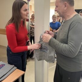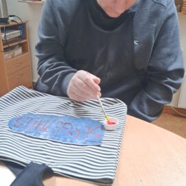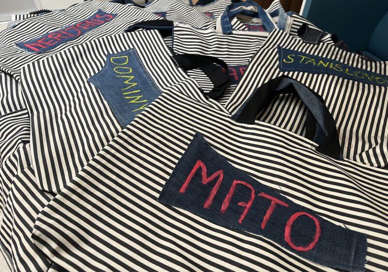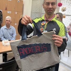 Mūsų įstaiga tęsia kūrybišką tvarumo veiklą, nes tai puikus būdas sumažinti atliekų kiekį ir sukurti praktiškus daiktus. Šį kartą siuvome medžiaginius maišelius: tam panaudojome įvairias atraižas, audinių likučius, bei senus rūbus. Maišelius jaunuoliai dekoravo užrašais, sagomis, užtrauktukais ir kišenėmis. Pasiūta 30 džinsinio audinio maišelių susidėti asmeniniams daiktams, jie buvo išdalinti visiems padalinio paslaugų gavėjams. Prie gamybos prisidėjo šie jaunuoliai: Indrė, Sergej, Stanislovas ir Gintaras.