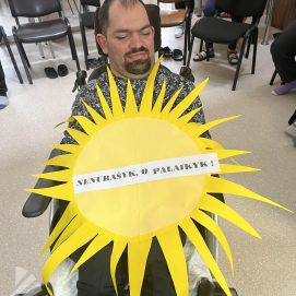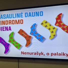 Kovo 21 d. minėjome Pasaulinę Dauno sindromo dieną. Ši diena minima visame pasaulyje, o jos tikslas – formuoti teigiamą visuomenės požiūrį į Dauno sindromą turinčius žmones. Šie žmonės ypatingi tuo, kad turi viena chromosoma daugiau nei įprastai. Tai reiškia, kad jie jaučia daugiau meilės, supratimo ir šilumos, todėl ne veltui dar vadinami „Saulytėmis“. Kas sukelia šį genetinį pokytį nėra nustatyta, bet mums svarbu ne suprasti, kodėl taip nutiko, o suvokti, kad visi žmonės, turintys Dauno sindromą, yra unikalios asmenybės su savo ypatybėmis ir gebėjimais. Todėl šią dieną mūvėjome skirtingas kojines, taip išreikšdami palaikymą ir toleranciją žmonėms, turintiems Dauno sindromą, bei jų šeimoms. Visi kartu susirinkę sušokome skirtingų kojinyčių šokį, nuotaikingai grojant mūsų muzikantui Ramūnui. Taip pat kalbėjome apie tai, kas yra Dauno sindromas, ir žiūrėjome socialinį filmuką, kuriame pamatėme, kaip puikiai žmonės, turintys šį sindromą, gali integruotis į visuomenę. Na o mes prisijungiam prie socialinės akcijos ir sakome „Nenurašyk, o palaikyk!”