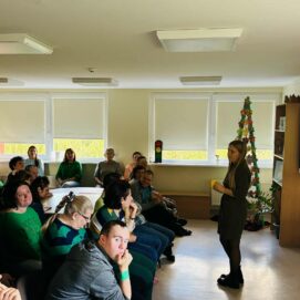 Pasipuošę žaliais akcentais, kartu su įstaigos psichologe prisiminėme pagrindines emocijas, aptarėme būdus, kaip palaikyti gerą emocinę savijautą bei kaip atpažinti, kada pagalbos gali reikėti kitiems.