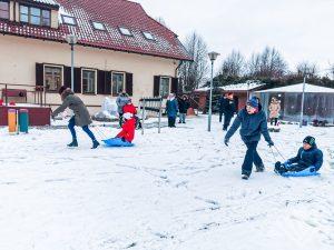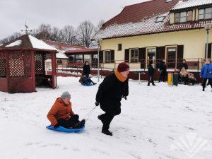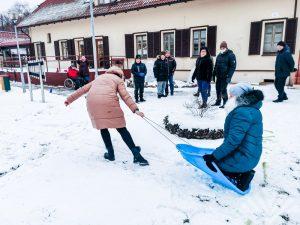 Šio žiemiško renginio metu paslaugų gavėjai buvo supažindinti kada buvo pradėta švęsti sniego diena, kaip kiti žmonės švenčia šią dieną ir vykdomos įvairios judumo veiklos, aktyvūs žaidimai, bei maišomi dažai ir piešiami piešiniai ant sniego. Organizmo stiprinimui ir grūdinimui vietoje mankštos pasirinkome sniego mūšį. Šventei oras pasitaikė labai palankus ir visi dalyviai noriai piešė, liejo spalvas ant sniego. Nupiešus piešinius ir pasportavus visi ėjo gerti karštos arbatos ir dalytis įspūdžiais.