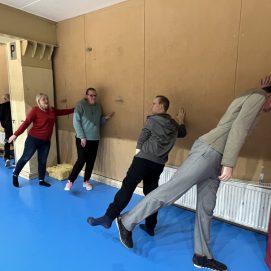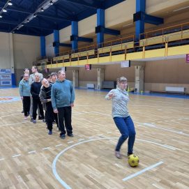 Fizinis aktyvumas – tai veiksnys, kuris daro stiprią įtaką žmogaus organizmui ir jo funkcijoms. Jis ugdo ir stiprina visas organizmo sistemas, veikia jų funkcijas ir gyvybingumą. Žmogui fizinis aktyvumas reikalingas lygiai tiek pat, kiek maistas ir oras. Lapkričio 17 d. Socialinių paslaugų centro „Klaipėdos lakštutė“ paslaugų gavėjų būrys susitiko su Klaipėdos miesto visuomenės sveikatos biuro specialiste. Ji vedė aktyvią mankštą, kurios tikslas – palaikyti ir gerinti bendrąsias organizmo funkcijas, pusiausvyrą, raumenų jėgą bei sąnarių judesių amplitudes, didinti kūno mobilumą. Smagiai pasimankštinę, atlikome užduotis su minkštu futbolo kamuoliu. Vėliau laukė užduotis, skirta lavinti pusiausvyrą ir koordinaciją ant nestabilių plokštumų. Smagu matyti, kaip paslaugų gavėjams patinka judėti, mankštintis ir atlikti įvairias judesio užduotis.