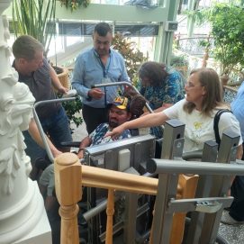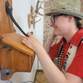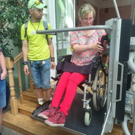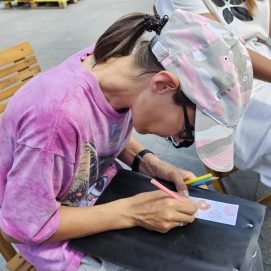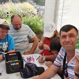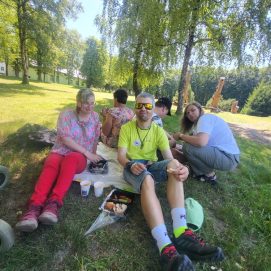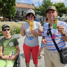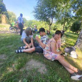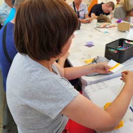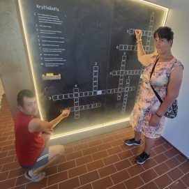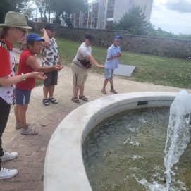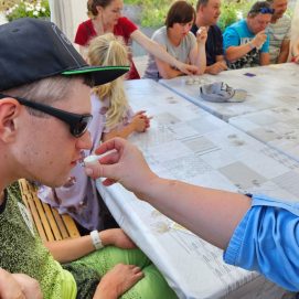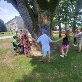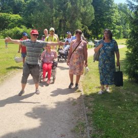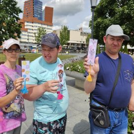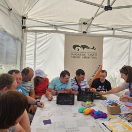 Įstaigos likusieji paslaugų gavėjai vyko į Karlskronos aikštę, kur įsikūrusi Klaipėdos miesto savivaldybės I. Kanto viešosios bibliotekos Interaktyvi vasaros skaitykla. Jaunuoliai dalyvavo edukacijoje „Kvapų pasaulyje“. Žaidė žaidimą „kvapų loto“, čia pasitelkus uoslę reikėjo atspėti 6 kvapus ir juos sudėlioti ant nupieštų, kiekvieną kvapą atitinkančių paveikslėlių. Vėliau pasigamino kvapnų knygų skirtuką. Kiekvienas galėjo skirtuką nuspalvinti bei padekoruoti jį spalvotais siūlais, vėliau knygų skirtuką pasikvėpino kvapniais eteriniais aliejais.