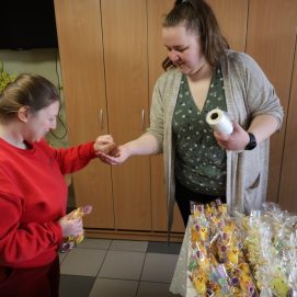 Pasitinkant Šv. Velykas mūsų centre (Panevėžio g. padalinys) netrūko šurmulio ir pavasariškos nuotaikos. Kovo 29–30 d. vyko velykinė mugė. Mugėje – rankų darbo atvirukai, skirtukai, papuošaliukai, įvairūs meniniai darbeliai, velykiniai skanumynai ir kepiniai. Sulaukėme gausybės tėvelių bei svečių iš socialinių paslaugų centro „Danė“. Smagu šventes pasitikti su gera emocija bei prasmingais darbais.